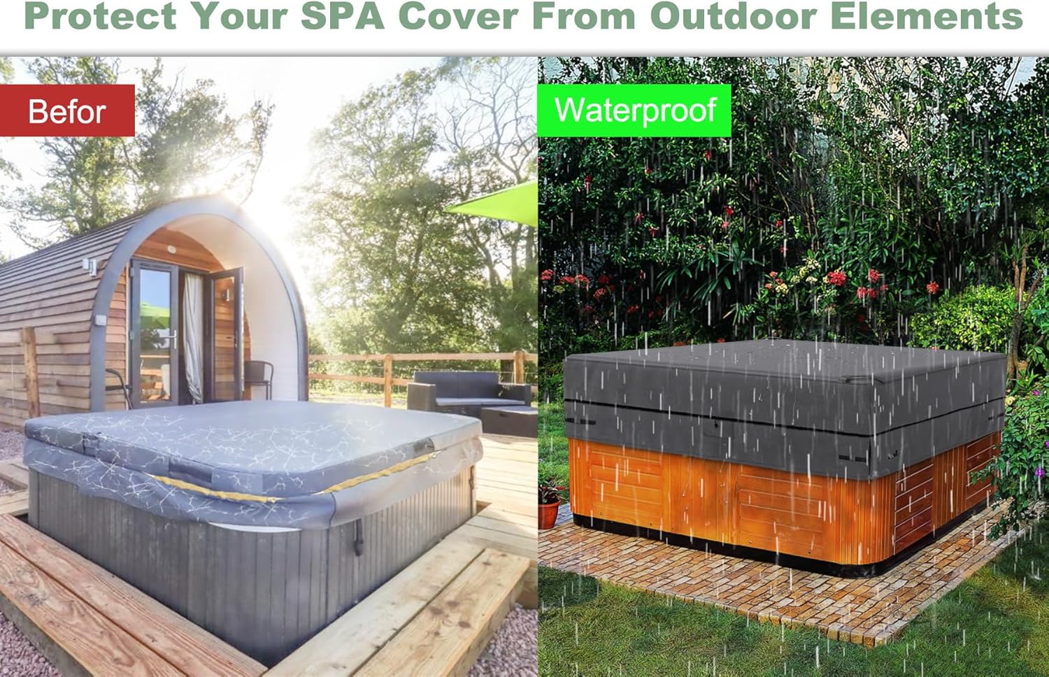 - 【Durable & Waterproof】Our spa cover is made of 600D Oxford fabric with PVC waterproof coating, which is durable, tear-resistant and excellent waterproof. keep your outdoor spa hot tub dry even heavy rainy day.