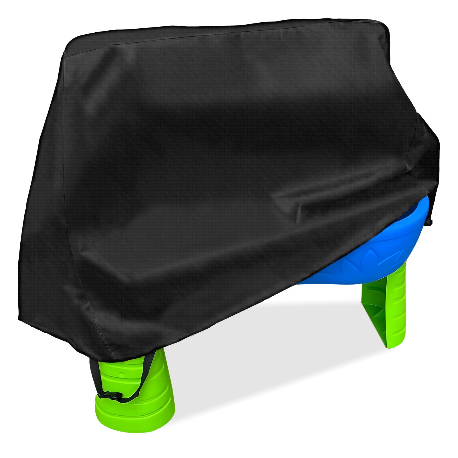 - 【Windproof Protection】-The bottom of outdoor kids table cover has 3 buckle straps, you just need to fasten the buckles around the legs, the cover will fix closely on the water table,and it will not be blown away by the wind.