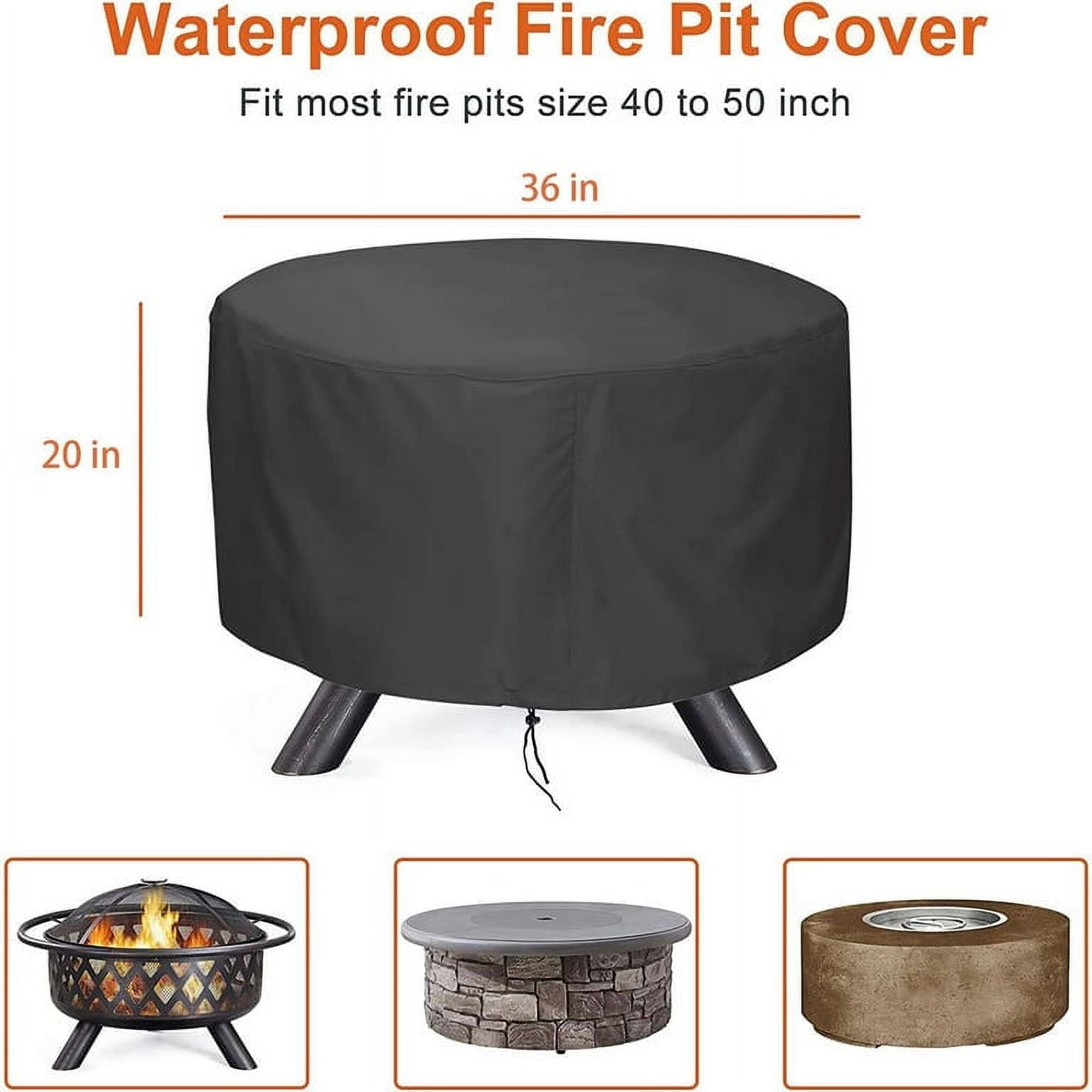 STARTWO Patio Round Fire Pit Cover Durable and Protective Firepit Cover for 36-50 inch Waterproof Windproof Outdoor
