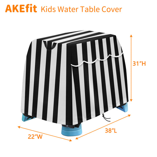 AKEfit Kids Water Table Cover, Waterproof Dustproof Outdoor Toys Cover Fits Rain Showers Splash Pond Water Table for Toddlers 1-3 - Black White (Cover Only)